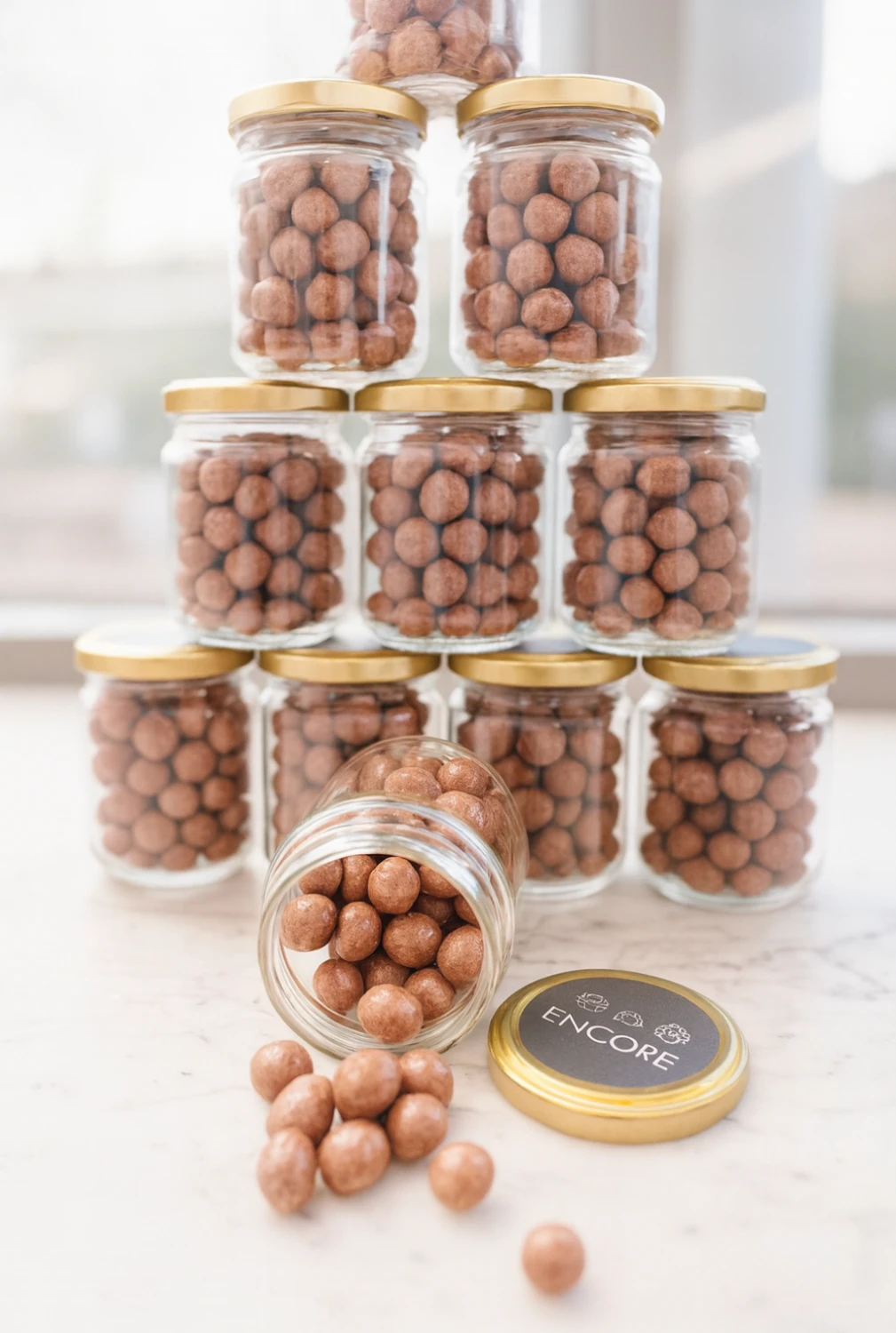 20 biter. Den perfekte balansen: lett ristede hasselnøtter trukket med et tynt lag melkesjokolade, toppet med en klype salt.