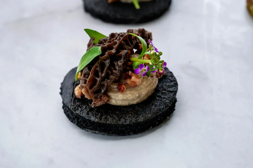 Sopp- og misokrem – En rik og kremet blanding av sopp og miso som tilfører en dyp umami-smak og en silkemyk tekstur.